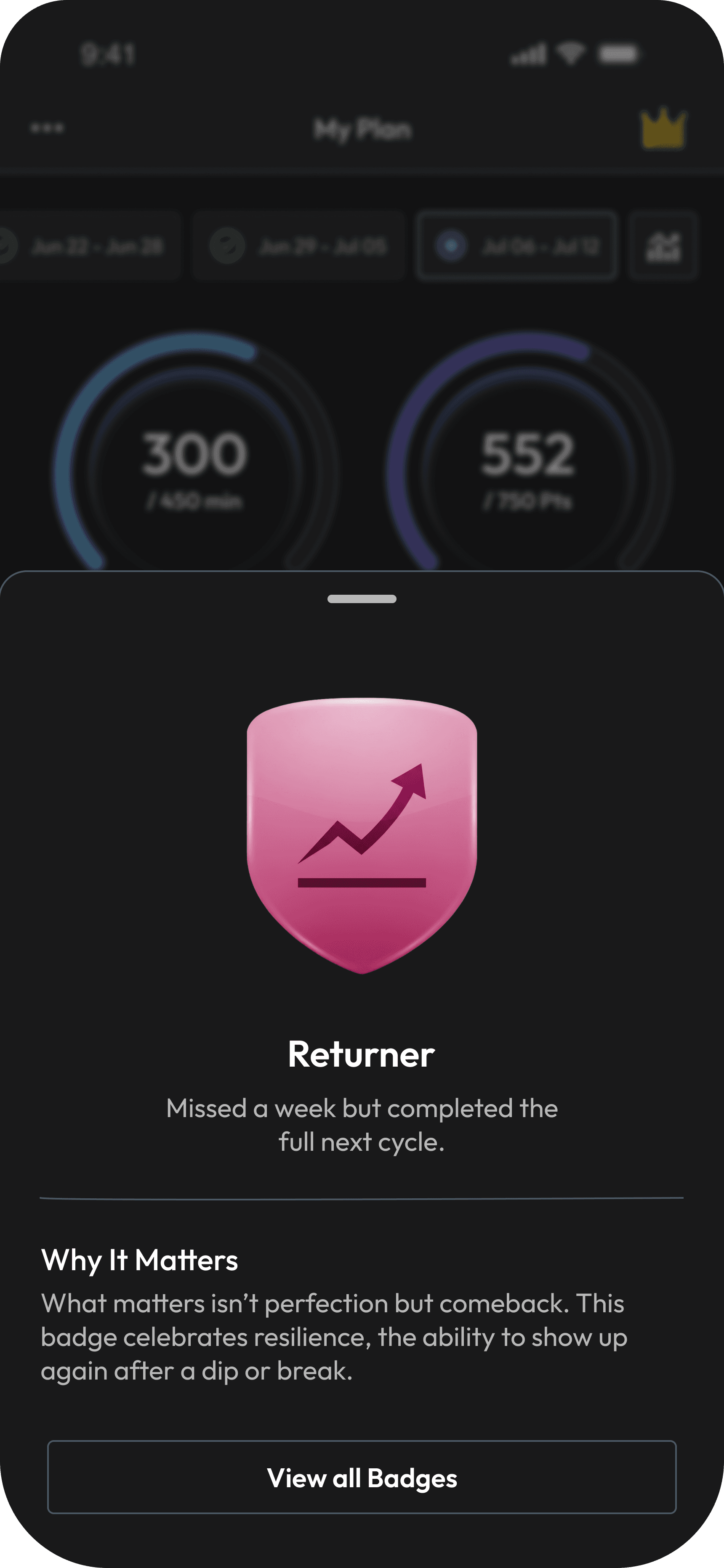 This mindset influenced how we handled rest days, progress pacing, and moments where users might otherwise disengage.