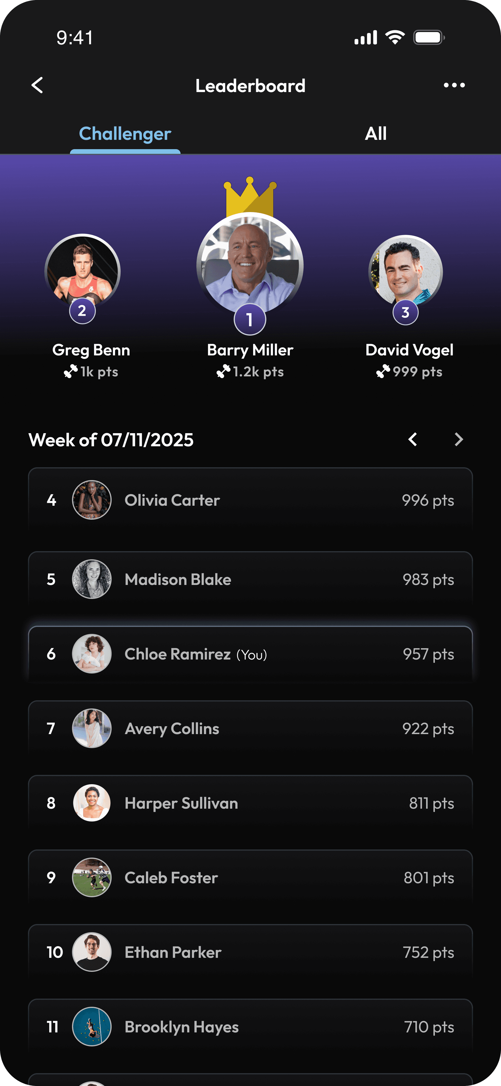 Introduced tier-specific and global leaderboards to help users feel part of a broader community, not just a plan.